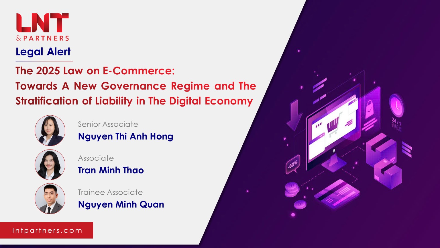 On 10 December 2025, the National Assembly officially ratified the Law on E-commerce No. 122/2025/QH15 (the “Law on E-commerce”), effective from 1 July 2026, marking a pivotal shift in the governance paradigm of Vietnam's digital economy. The Law establishes fundamental principles for a new regulatory regime, transitioning from a reactive “post-inspection” mechanism to a proactive “preventative control” approach. Furthermore, it clarifies the legal liabilities of stakeholders within the e-commerce ecosystem, with a strategic focus on transparency, regulatory discipline, and the sustainable development of the digital marketplace.